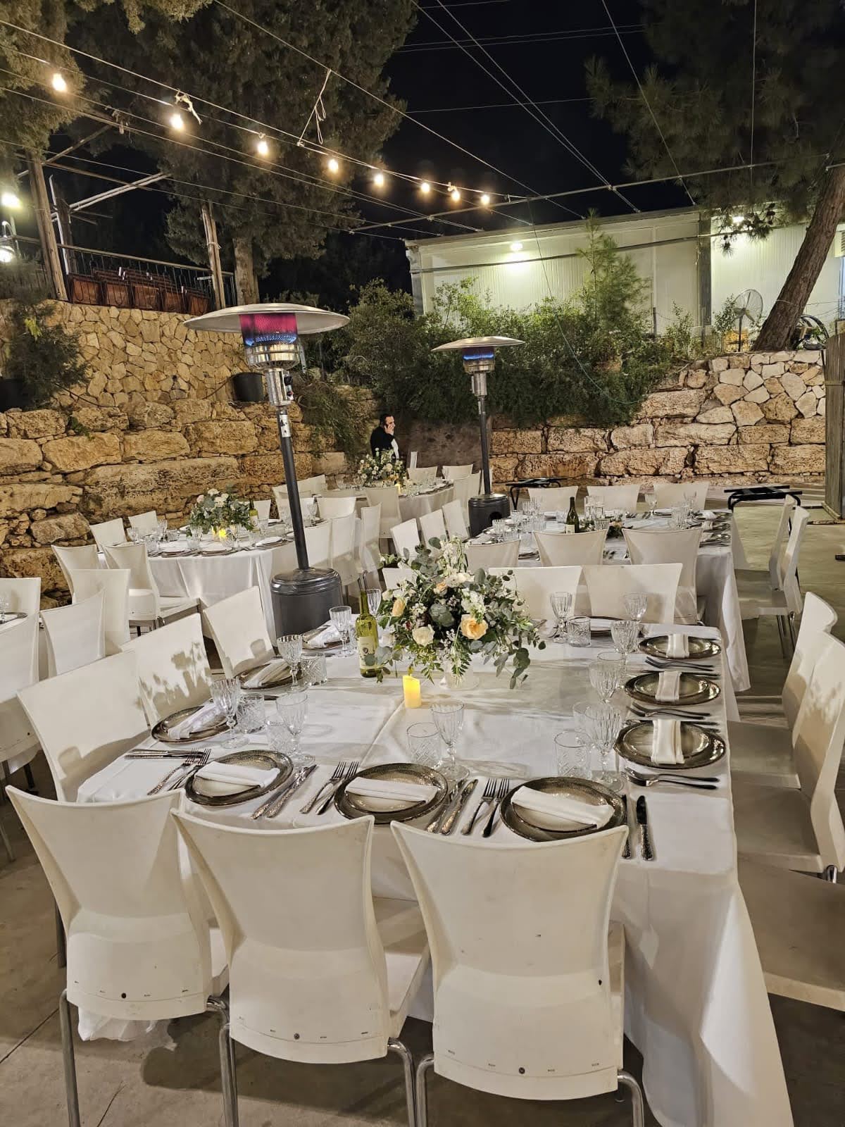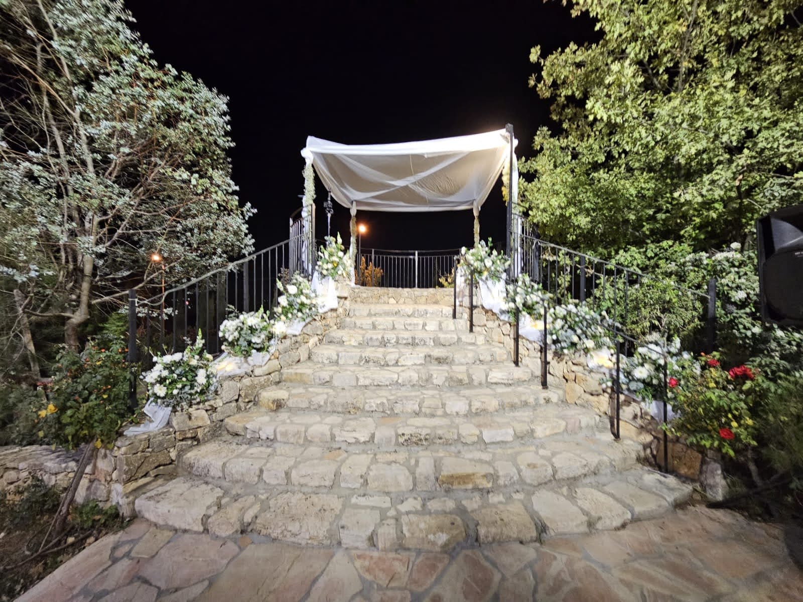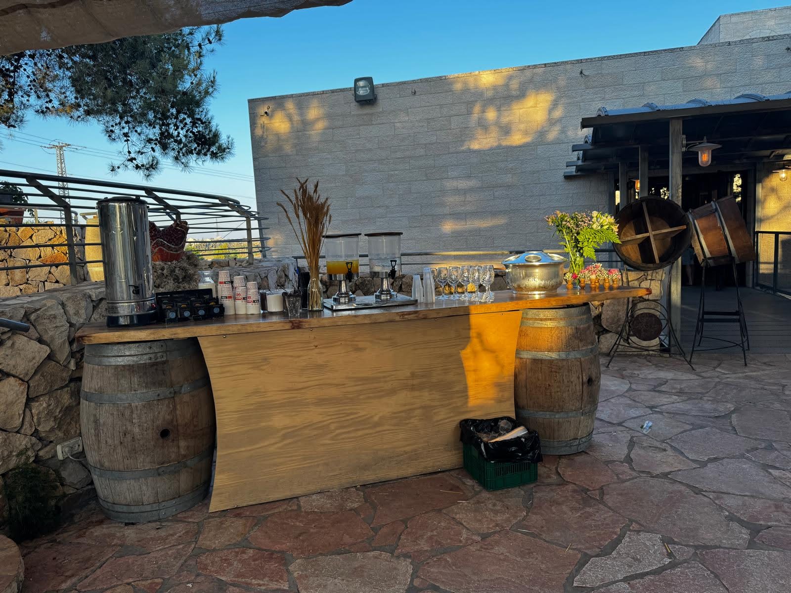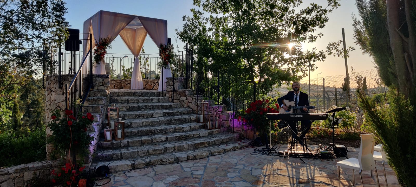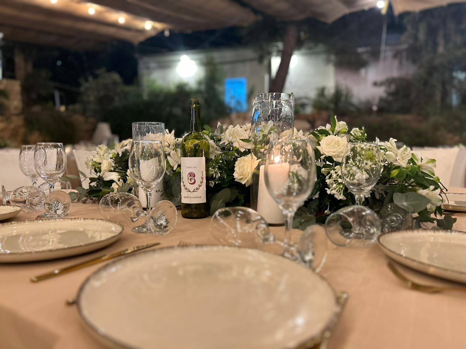 The Tamar Garden offers a different touch to your event with the ambience and mystique of a boutique winery. The venue is next to the Gush Etzion Winery, with many elements of the rich and glorious history of winemaking in the area. There is an ancient winepress in the garden. The chupah is positioned on a reconstructed shomera building (a building that was used in ancient times to store the grapes during harvest season.) The stone tower overlooks the sunset and the luxuriant green vineyards.