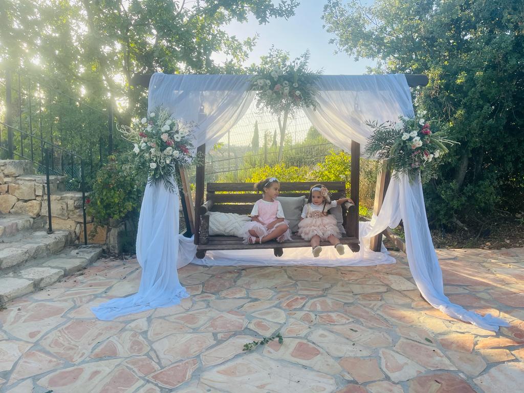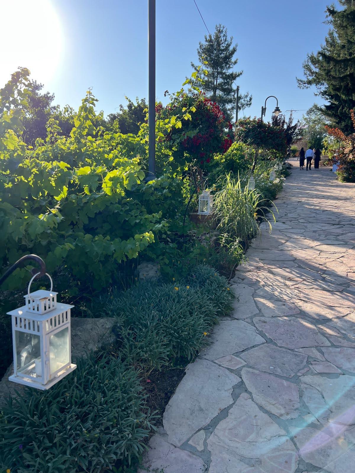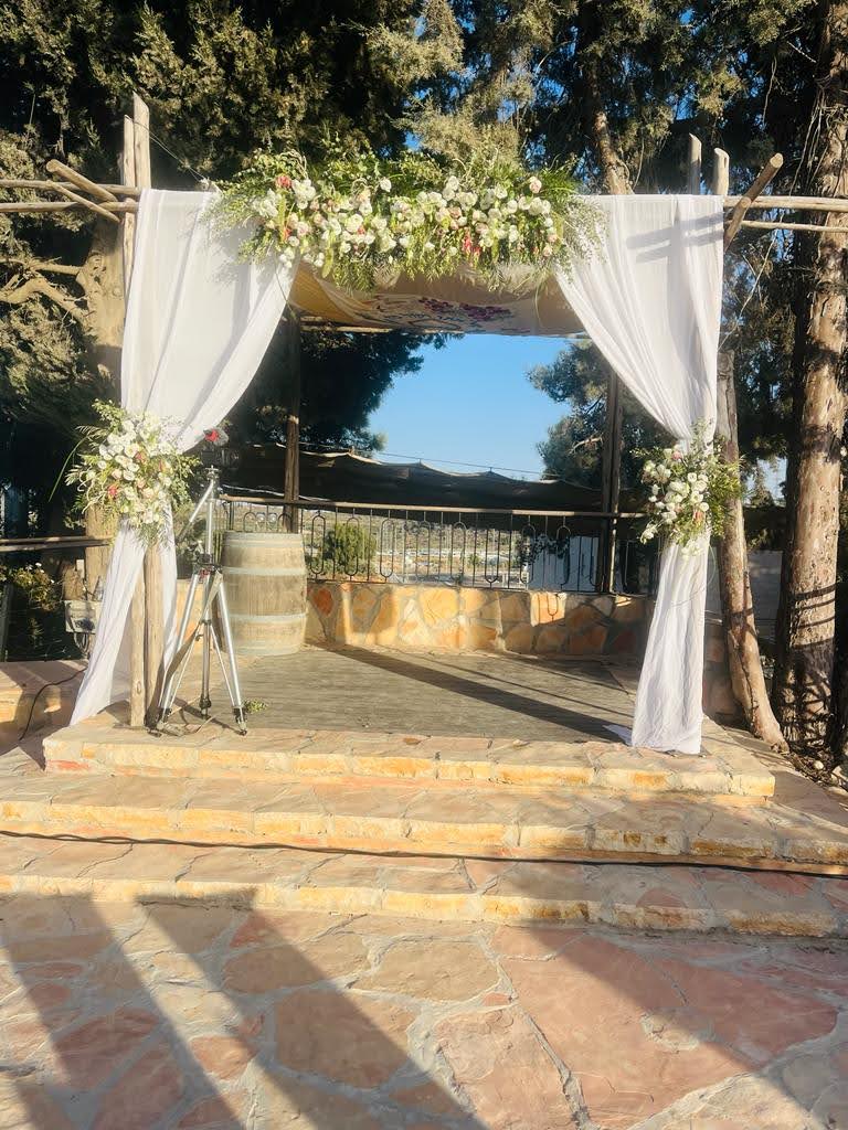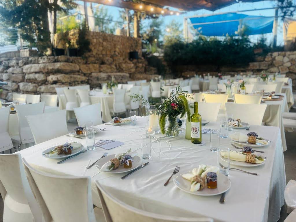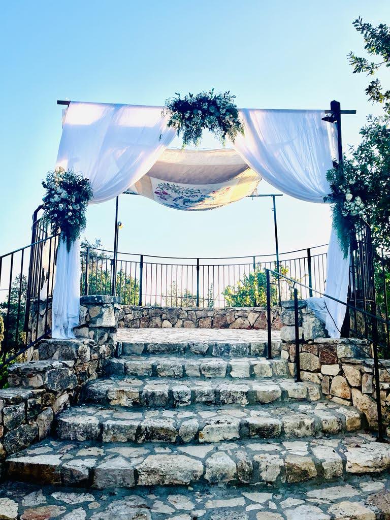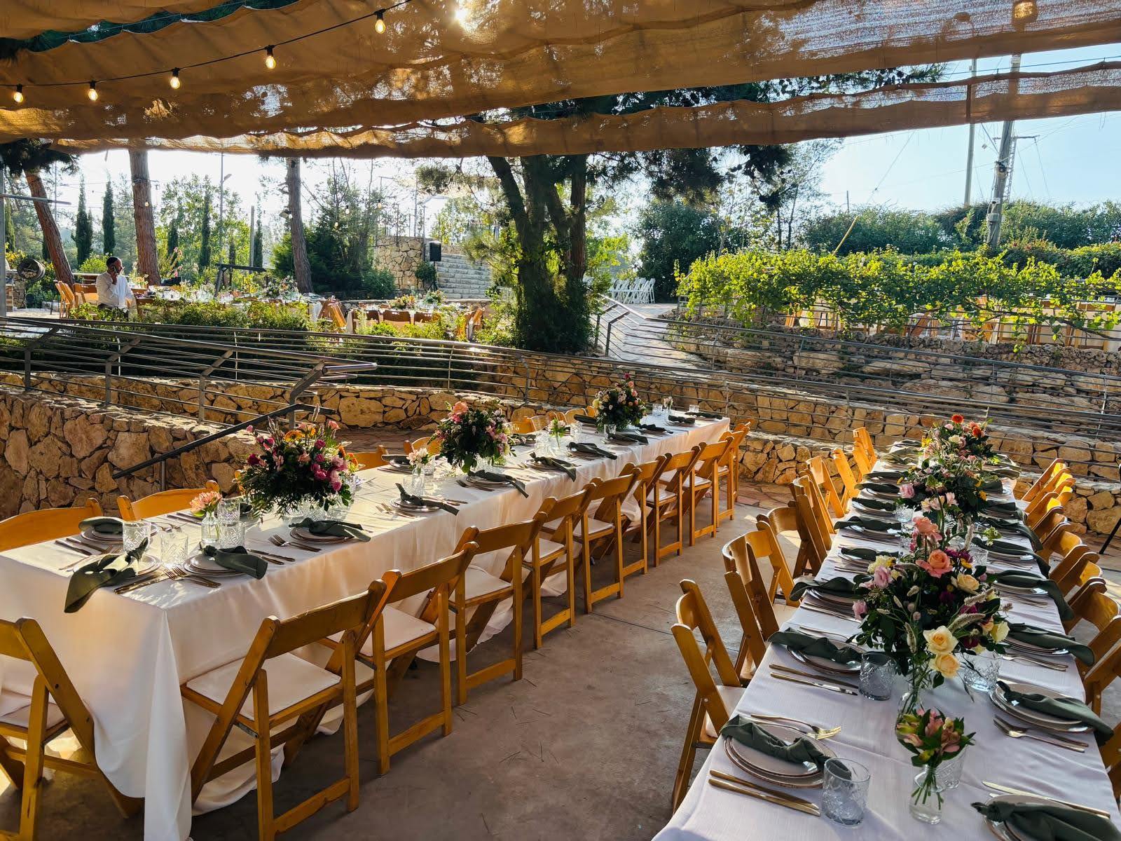 Gan Tamar Events Garden, situated in the Judean Mountains of Gush Etzion, is surrounded by vineyards in bloom and lush greenery.