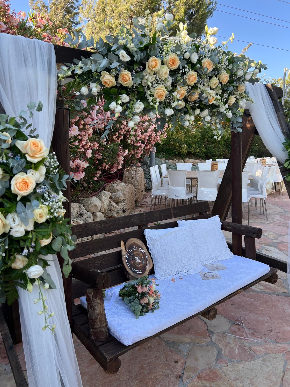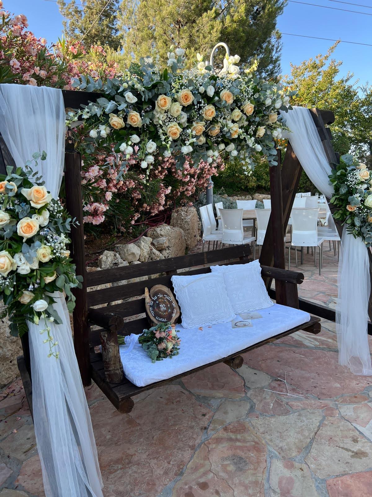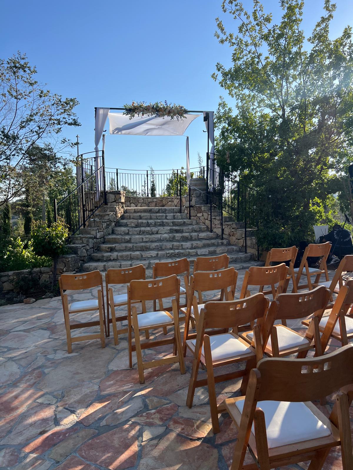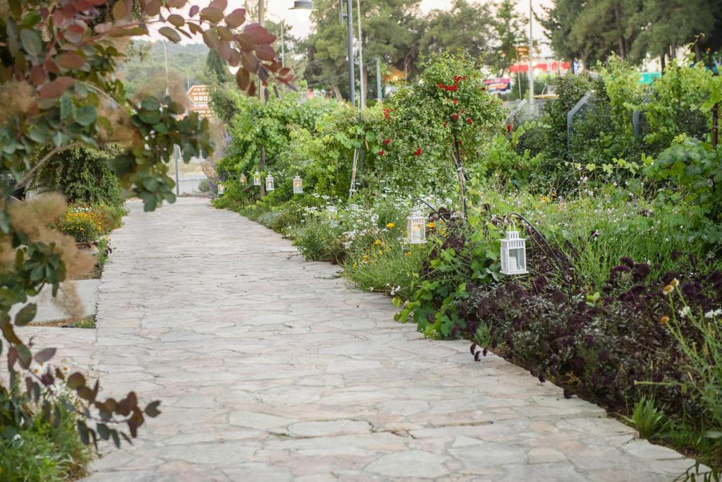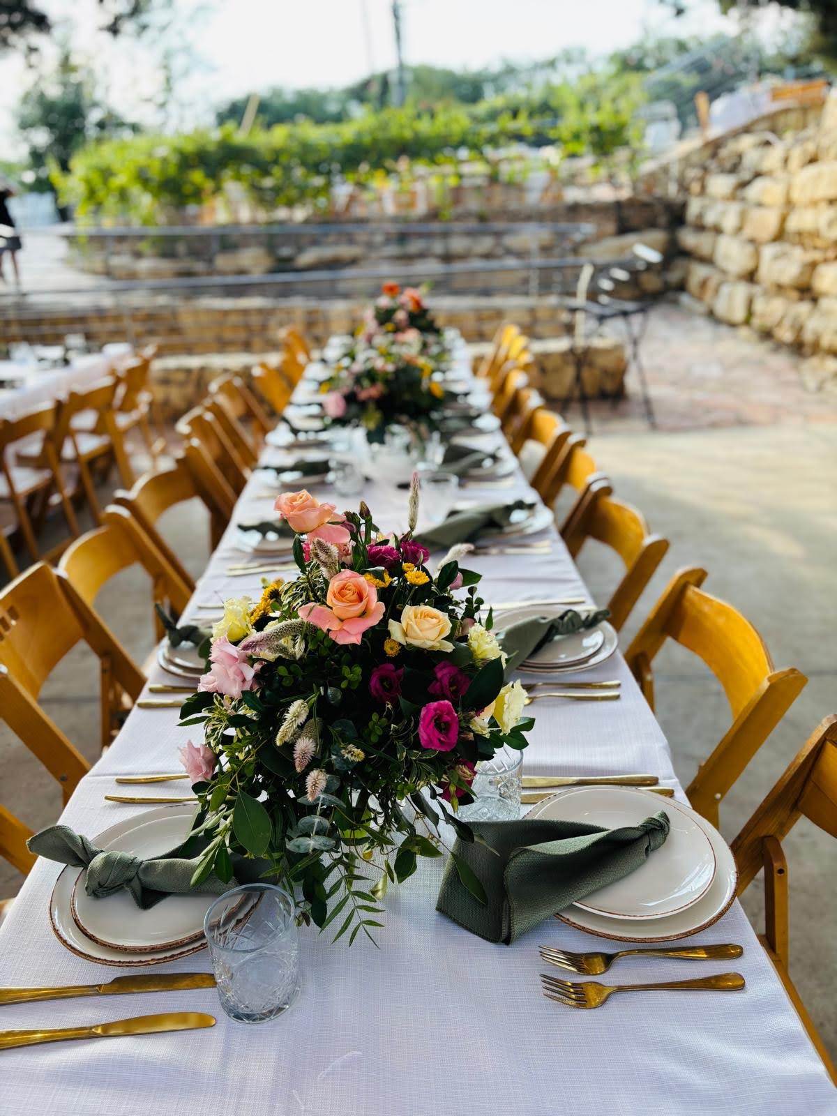 Gan Tamar Events Garden, situated in the Judean Mountains of Gush Etzion, is surrounded by vineyards in bloom and lush greenery.