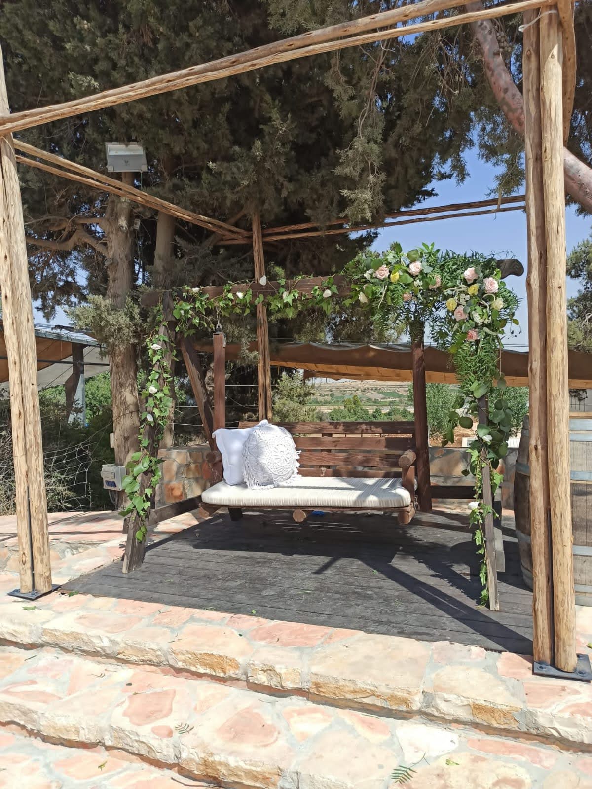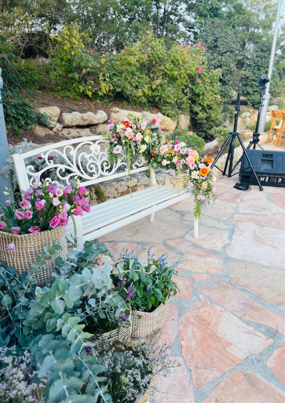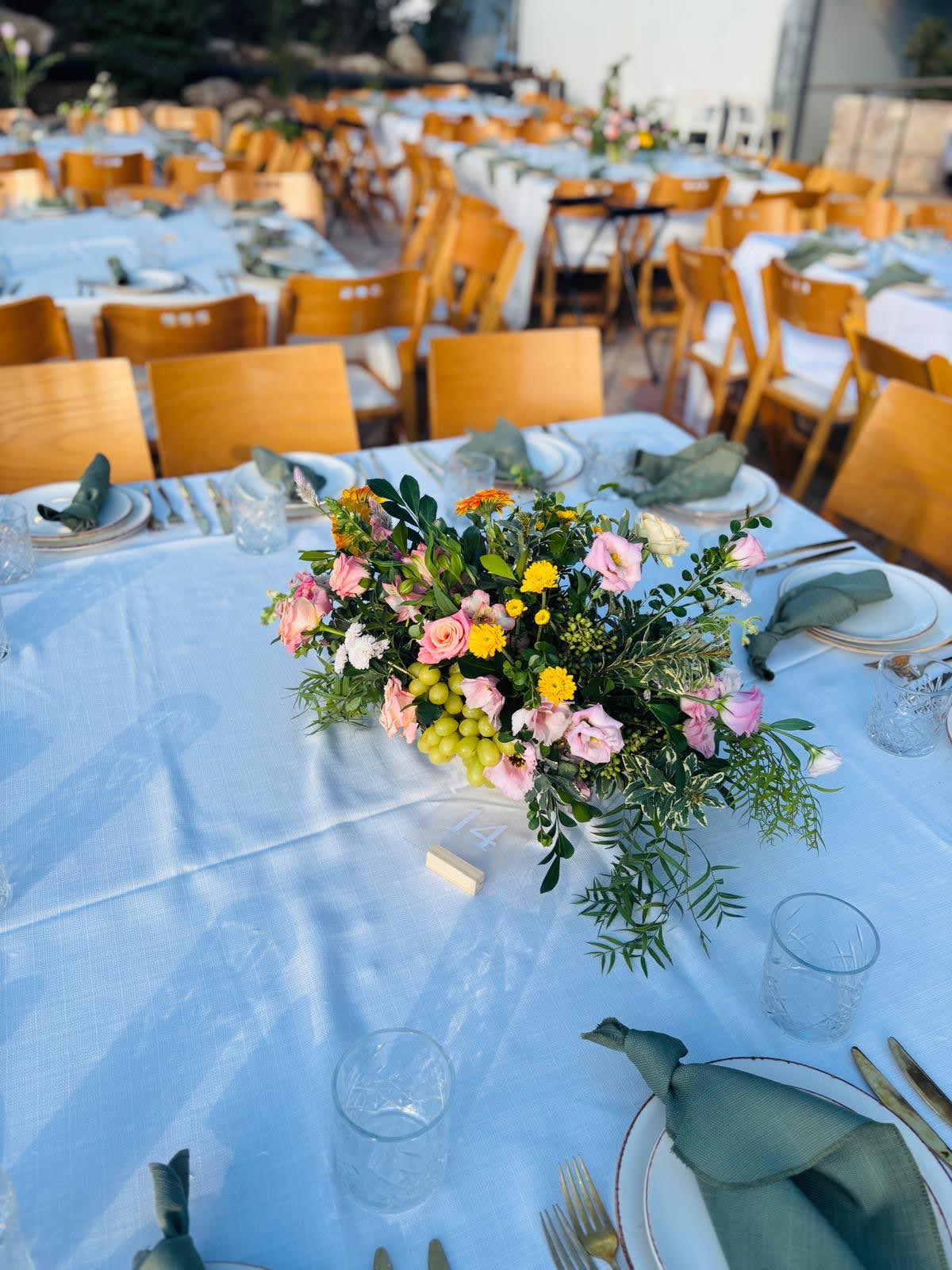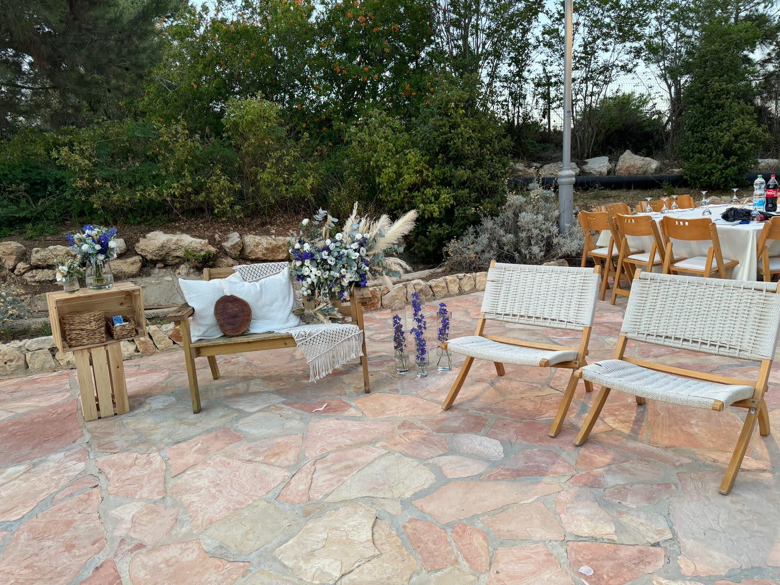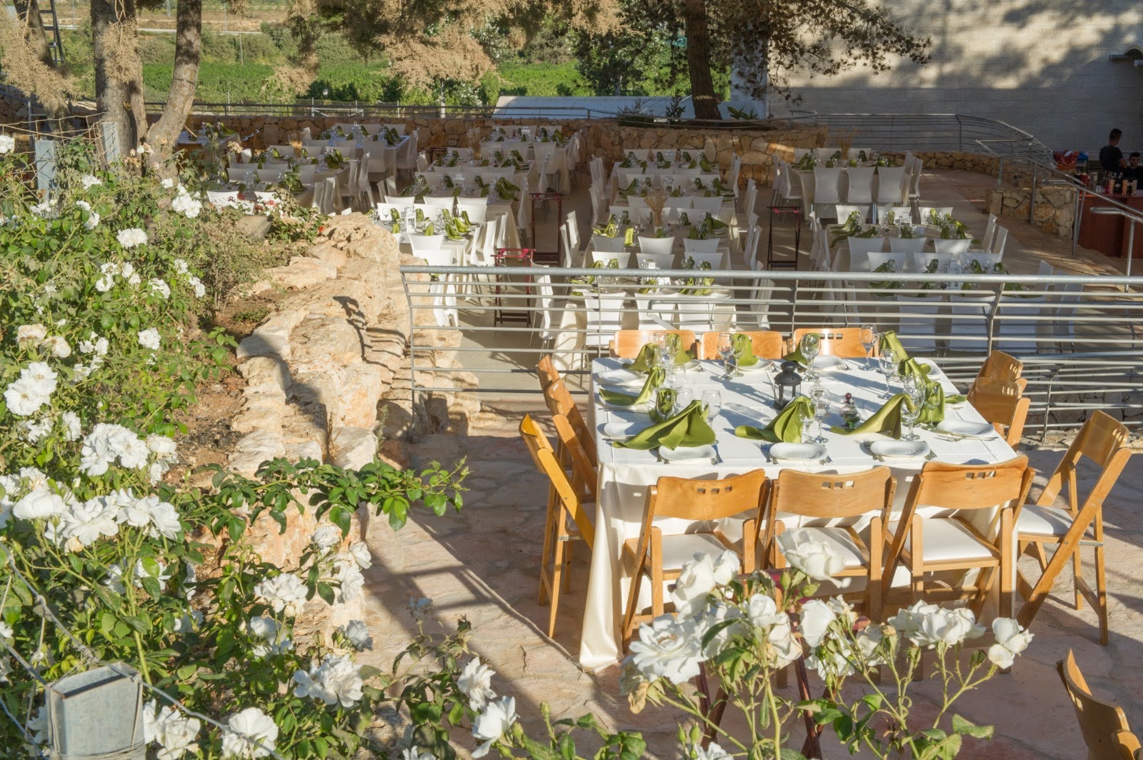 Gan Tamar Events Garden, situated in the Judean Mountains of Gush Etzion, is surrounded by vineyards in bloom and lush greenery.